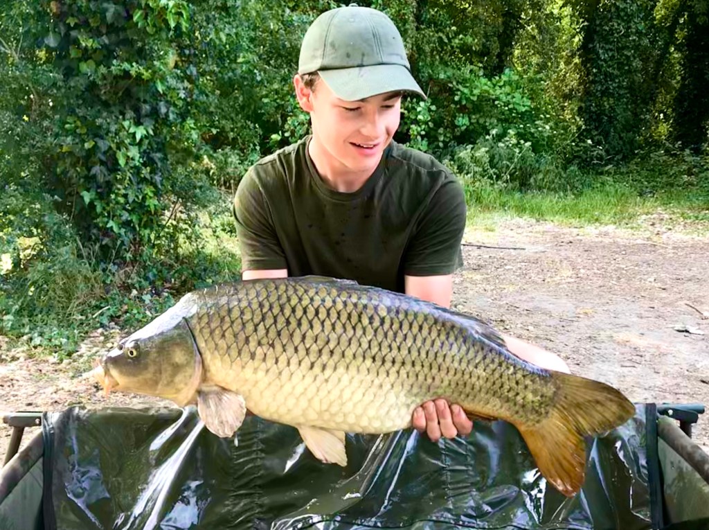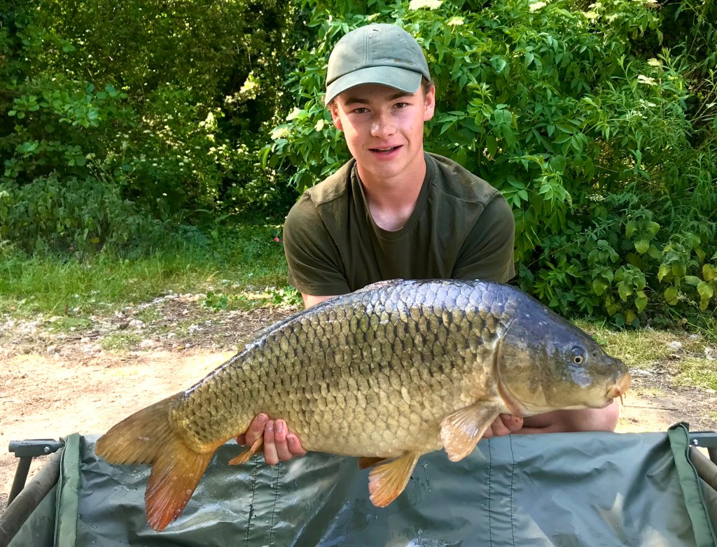 I cast the rod back out and was looking at the video of the bite when my other rod burst into action. This time there was something on the end. The fish peeled line off the spool and weaved left and right. After a good ten minutes it was in the net and beaten. It was a beautiful, deep bodied common of just over 19lb. A few weeks ago, before it spawned, it was likely a twenty. We took some photos, slipped her back and got the rod back on the spot.